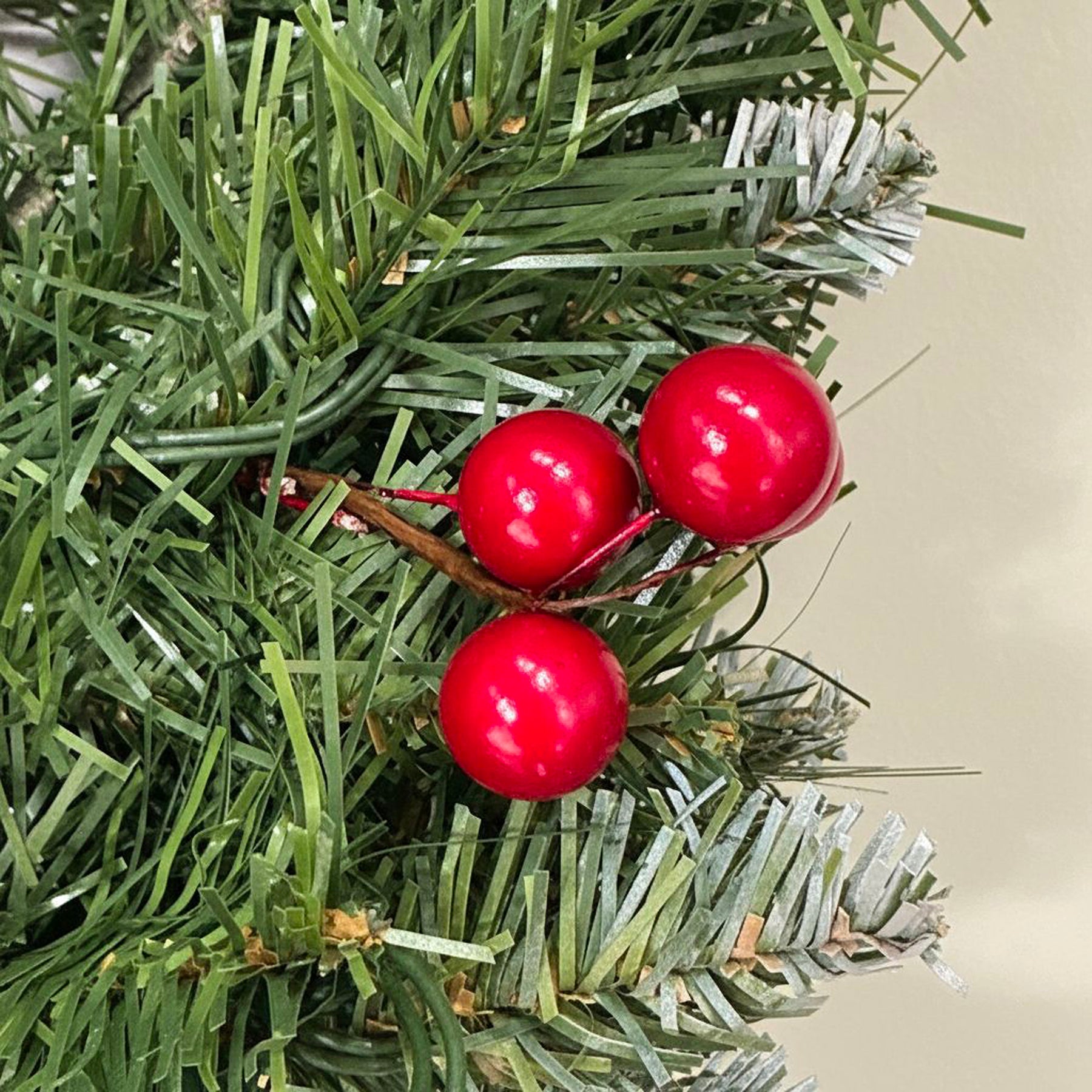• Bring a touch of seasonal elegance to your home with The Christmas Centre Evergreen Frosted Winterberry 24in (60cm) Pre-Lit Christmas Wreath. Designed to capture the beauty of a traditional winter scene, this charming wreath features a rich mix of evergreen foliage delicately frosted for a snow-kissed effect, while clusters of vibrant red berries are woven throughout the design to add warmth, colour, and festive cheer. Measuring 60cm in diameter, it is the perfect size for doors, walls, or as a decorative accent above a fireplace.