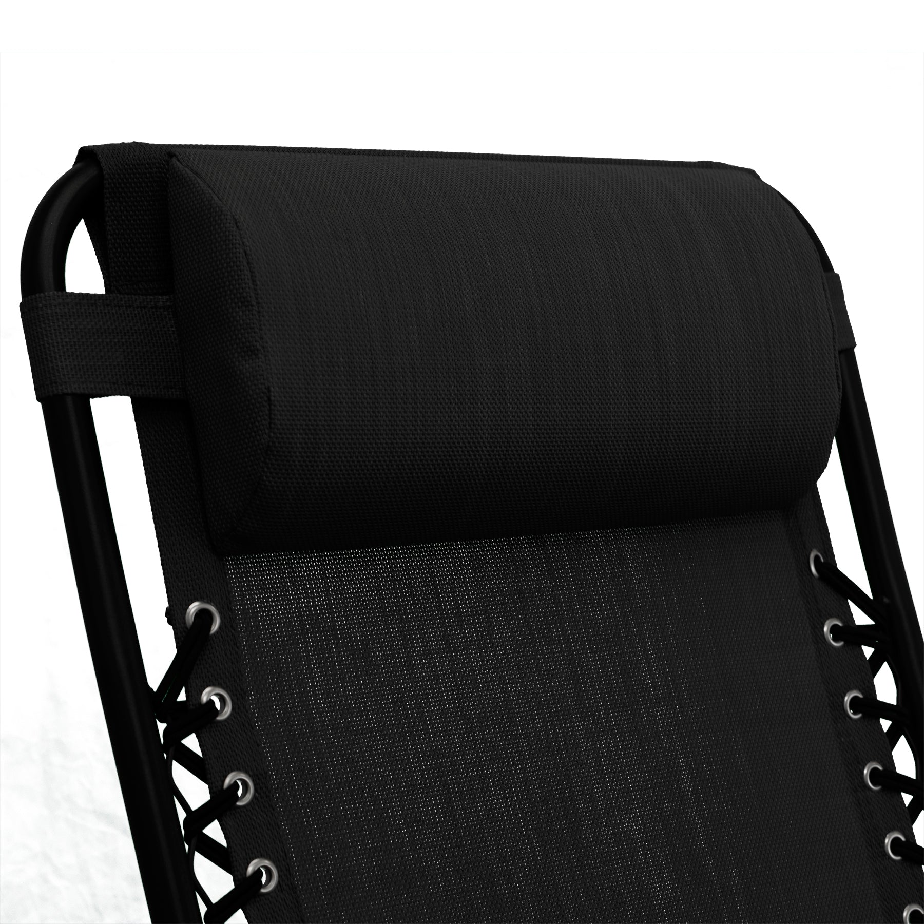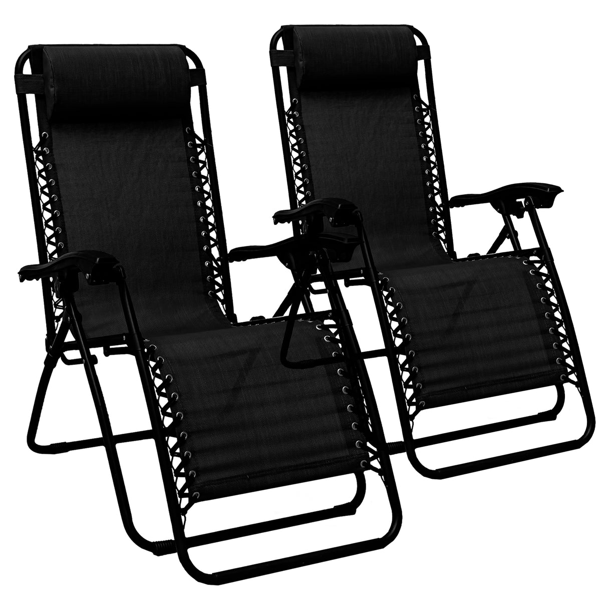 Sold as a pair, these chairs have black powder coated steel frames with textilene seat in either black or grey.