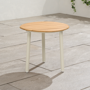 The teak's natural warmth on the top of the bistro table really adds an elegant touch, while the aluminium legs keep it practical and low-maintenance, especially in all kinds of weather.