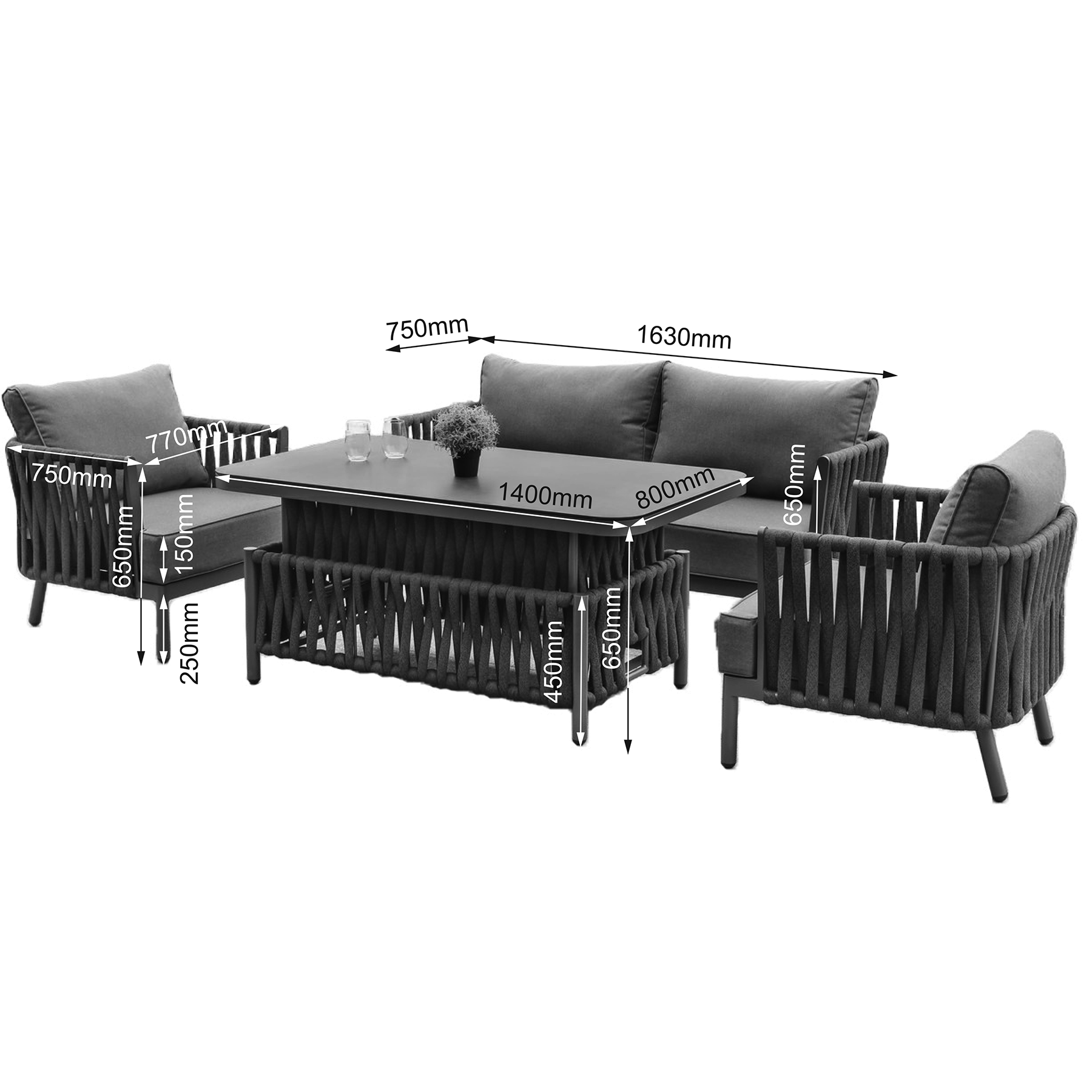 Bracken Outdoors Maldives Rope Aluminium Lounge Garden Sofa Set with Height Adjustable Table