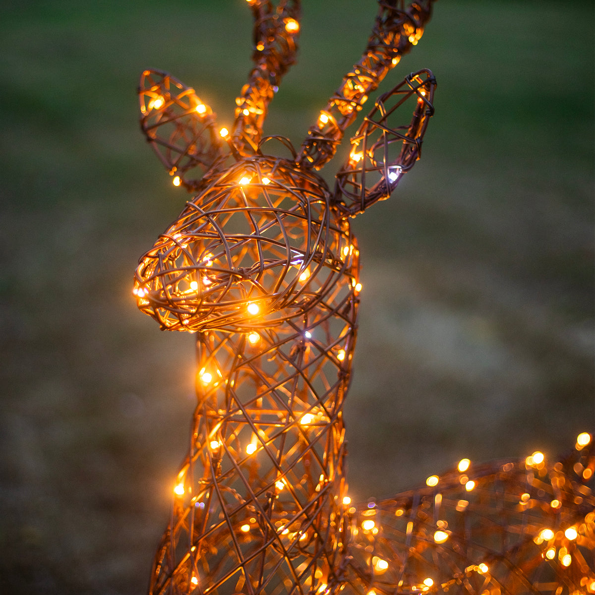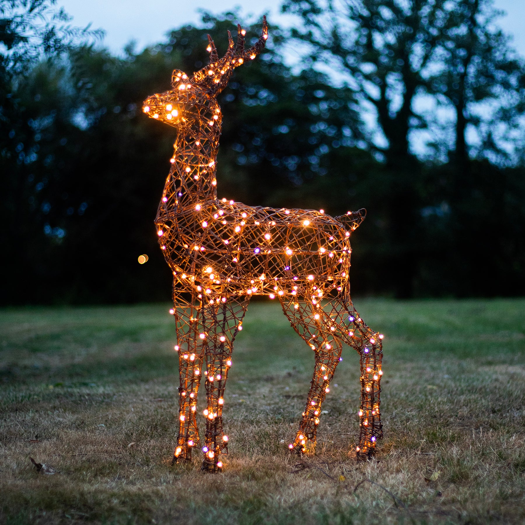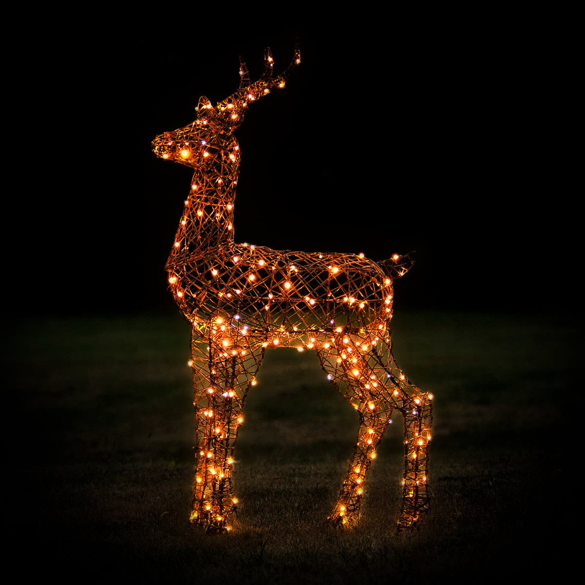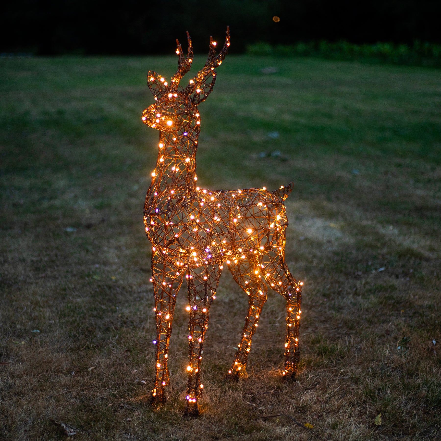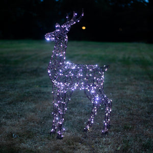 A stunning 230 white/warm white LEDs are used to illuminate the reindeer, which will enliven any holiday display. They flow evenly throughout across a discreet brown cable weaved within the body to provide happiness and sparkle to any festive display. Set the 8 hour timer to see your stag light up at the exact same time each evening.