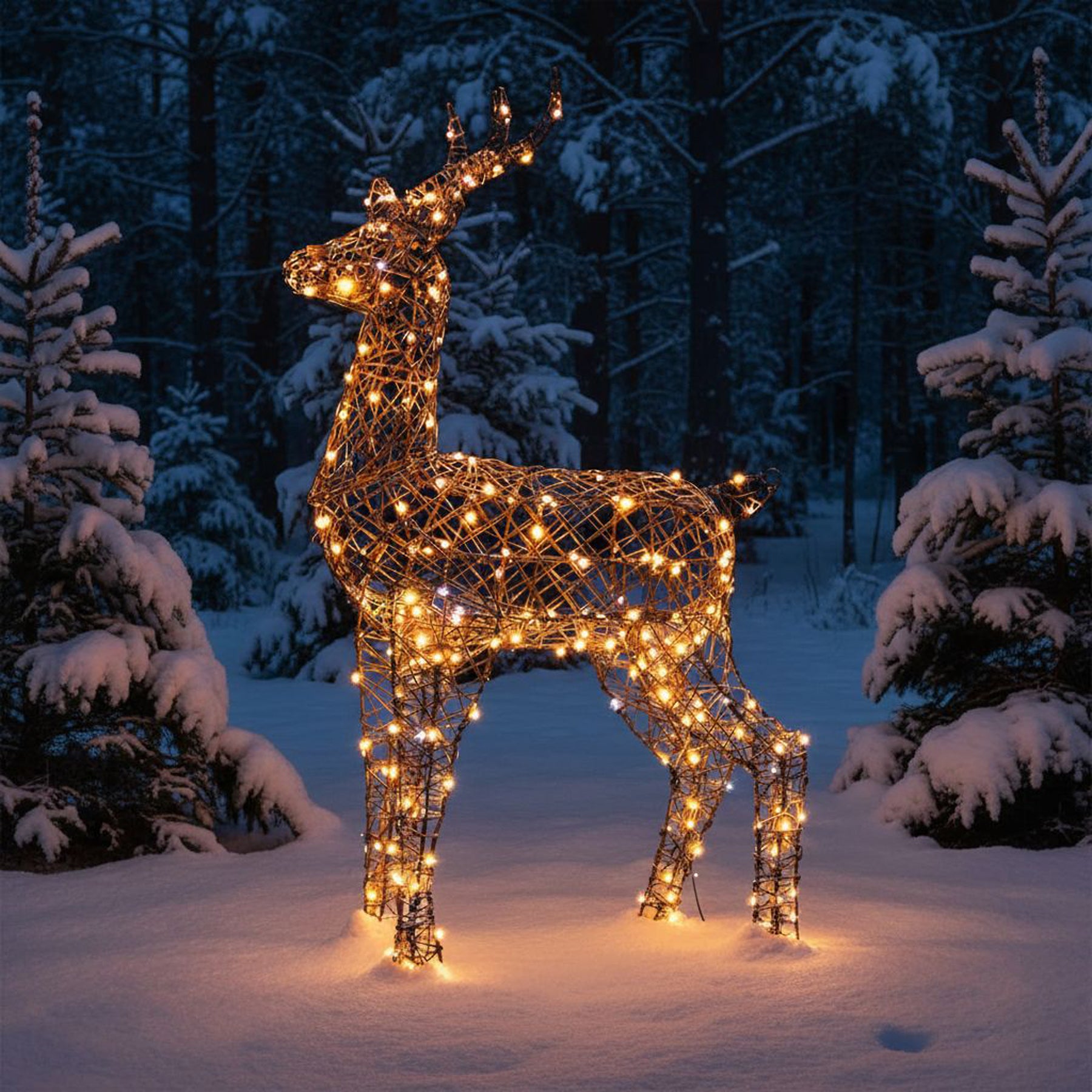 • With its natural coloured body and antlers, the Brown Wicker Light Up Christmas Reindeer Stagwill add a touch of sophistication to your winter wonderland this holiday season. This1.2m tall Christmas reindeer is protected thanks to the latest brown wicker material applied to it.