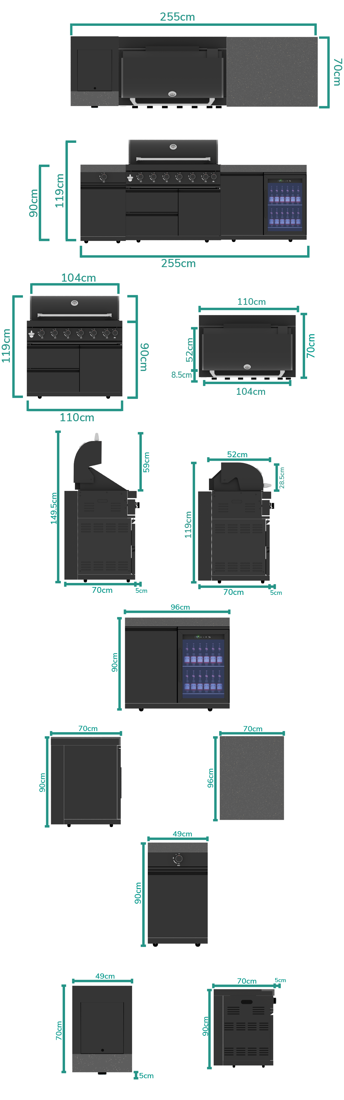 A full 304 grade Black stainless steel construction finished with a stunning granite top. It is perfect for those seeking a quality, robust weather resistant kitchen.