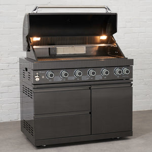 The Nero 6 Burner Barbecue comprises of a double skinned black stainless steel dome hood with 'cool to touch' technology, cast stainless steel "Power" burners give a consistent flame from front to back, providing even and efficient heat distribution, teamed with a ceramic infrared rear burner, for perfect grilling.