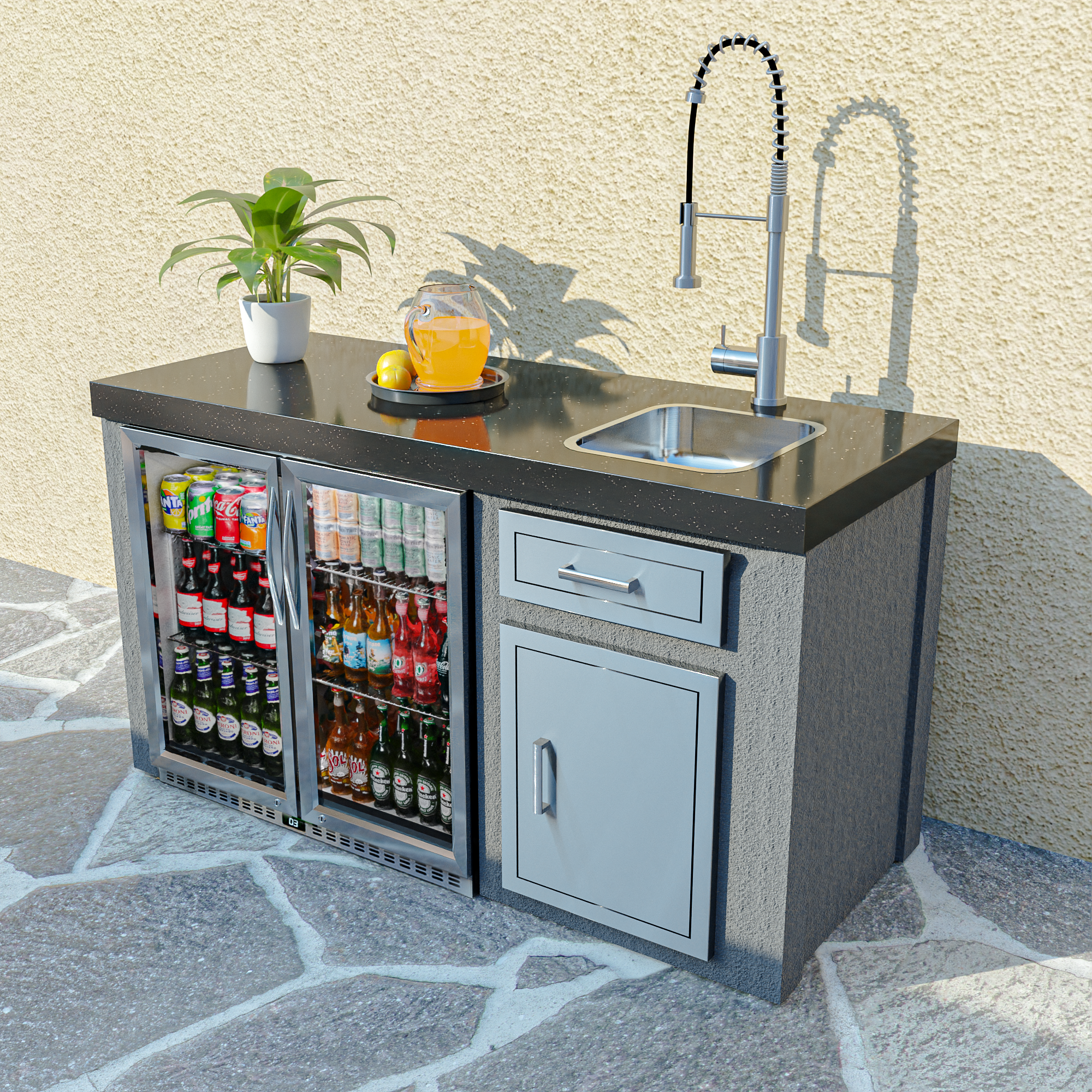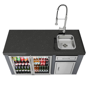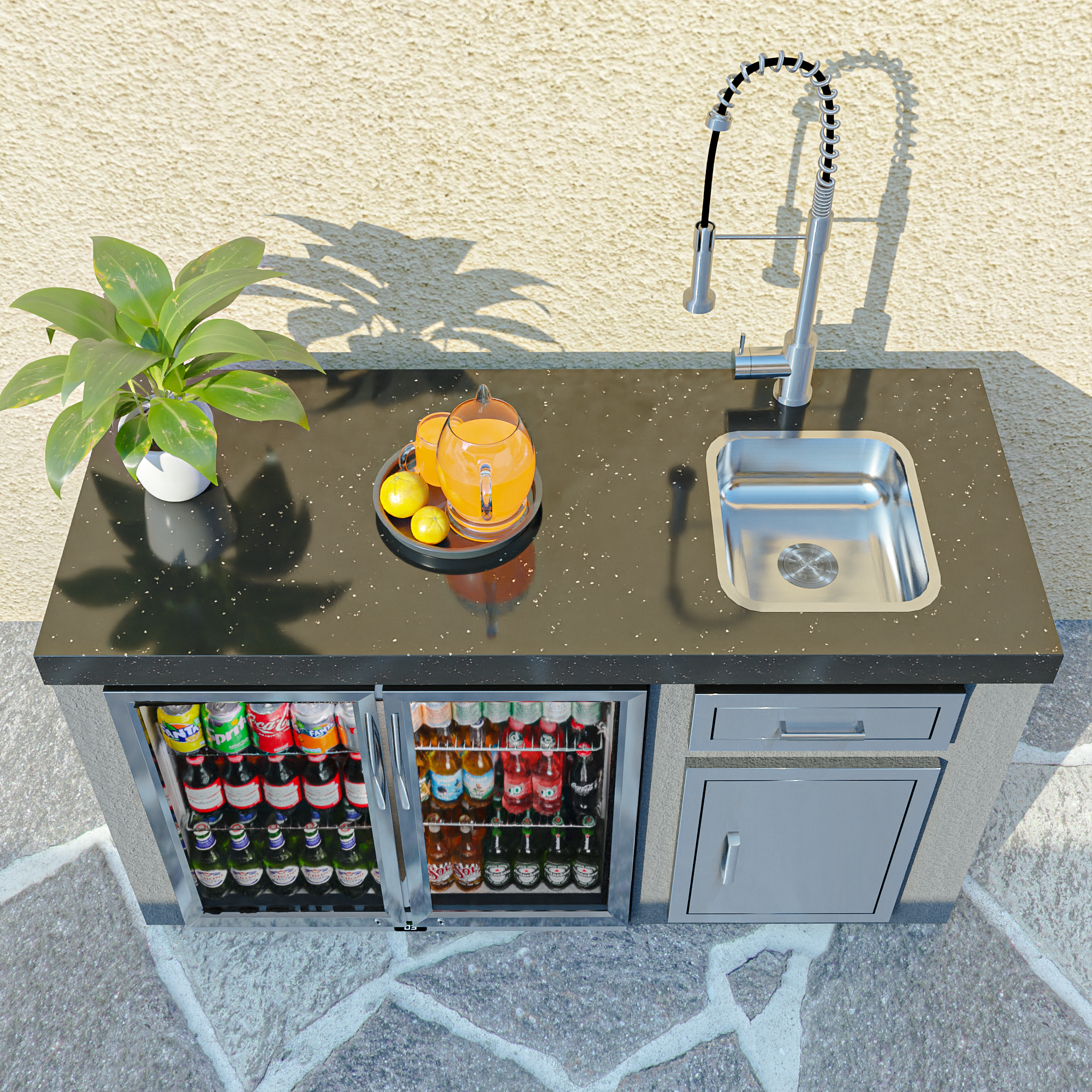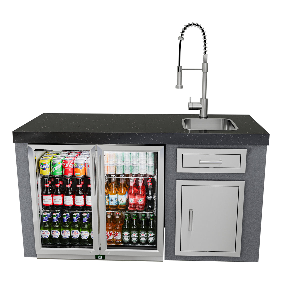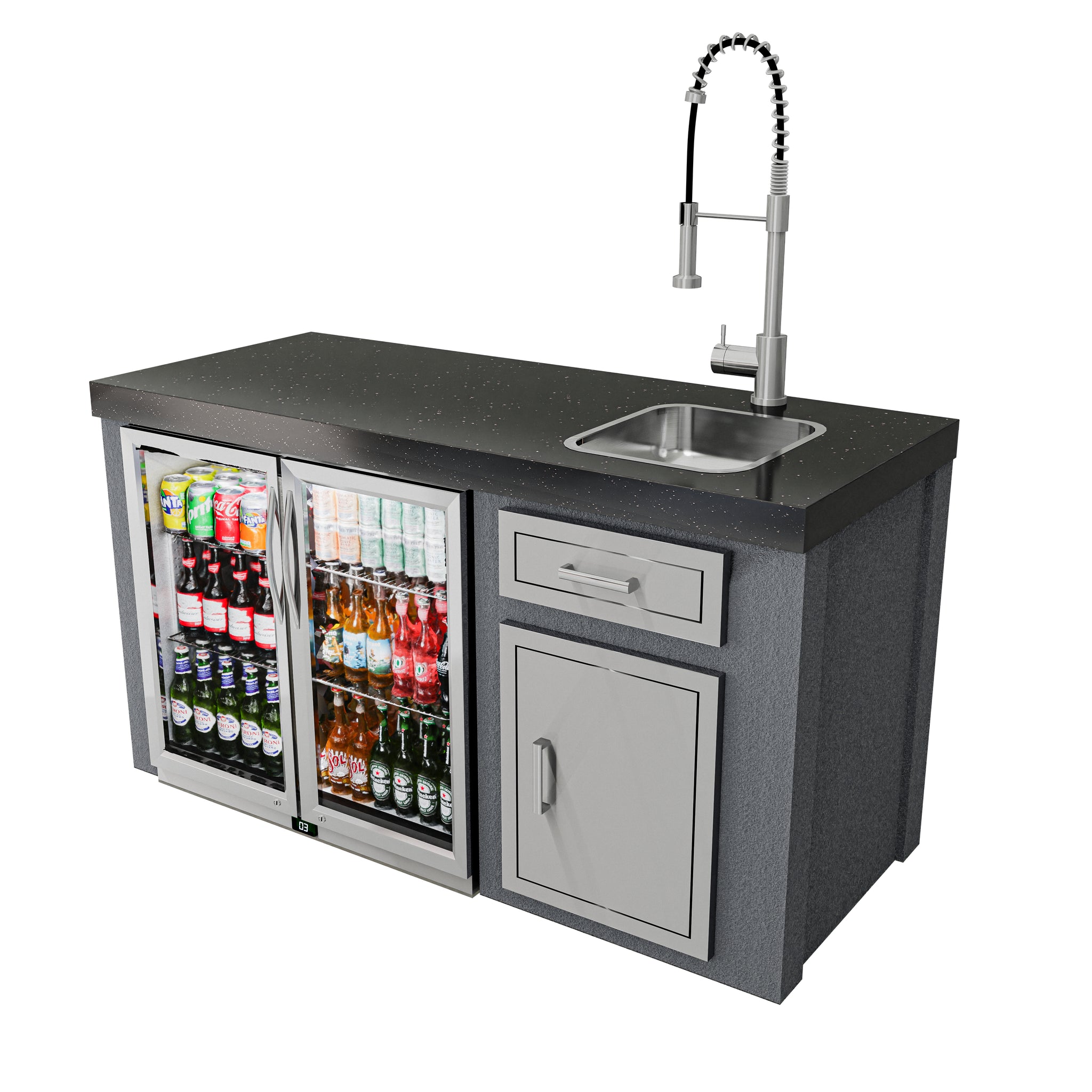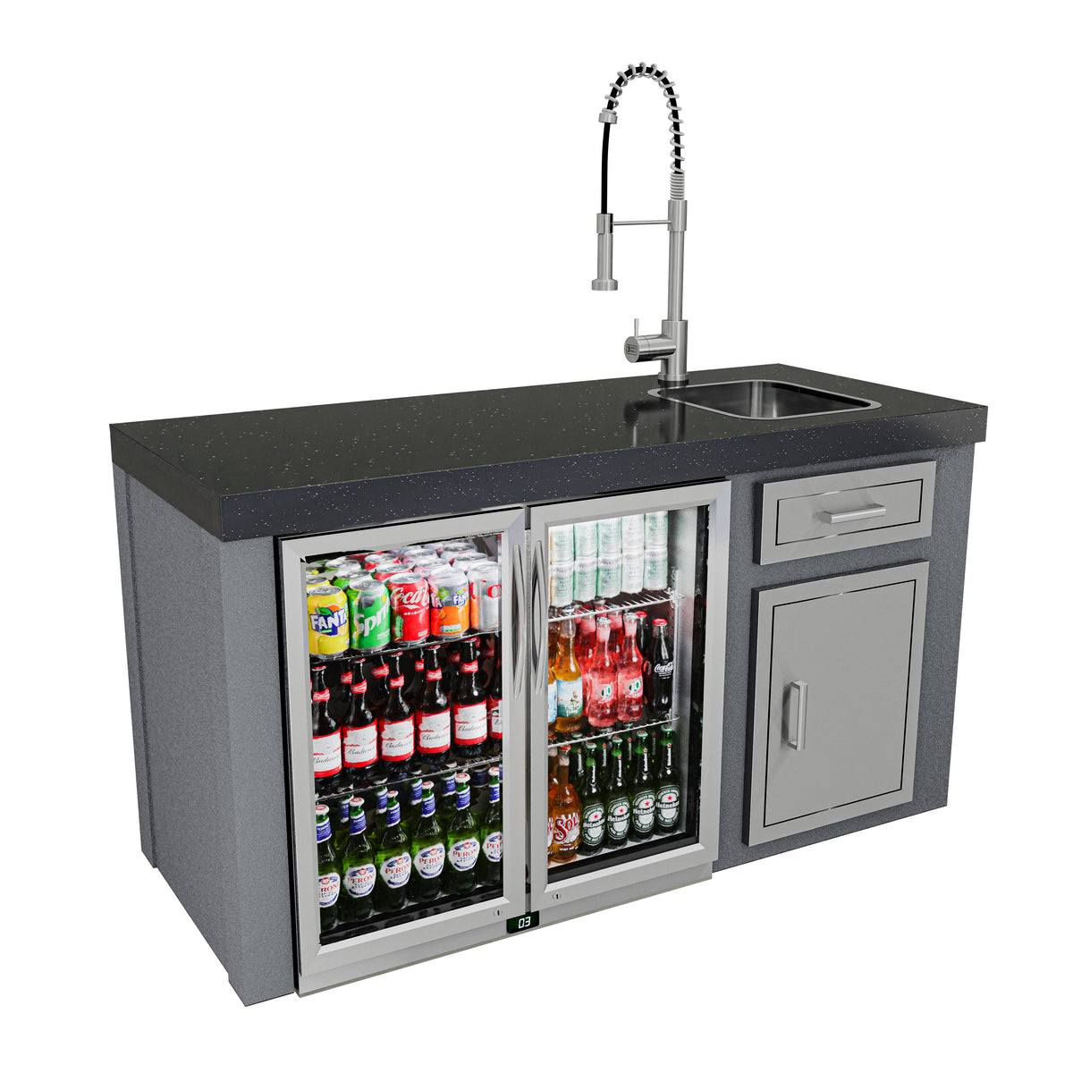 The Draco Grills outdoor refrigerators are built for the great outdoors, and this module has an outdoor sink & tap as an extra bonus. The fridge comes with a 1 year warranty.