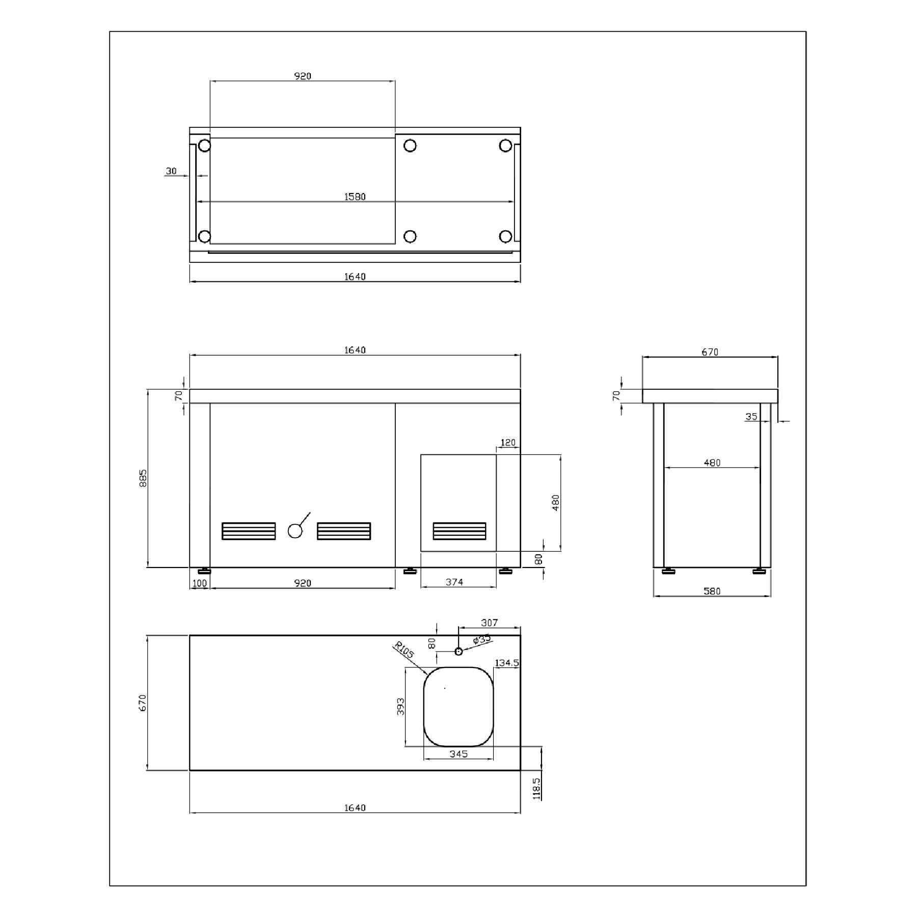 • Dimensions: 885mm (H) x 1640mm (W) x 670mm (D)