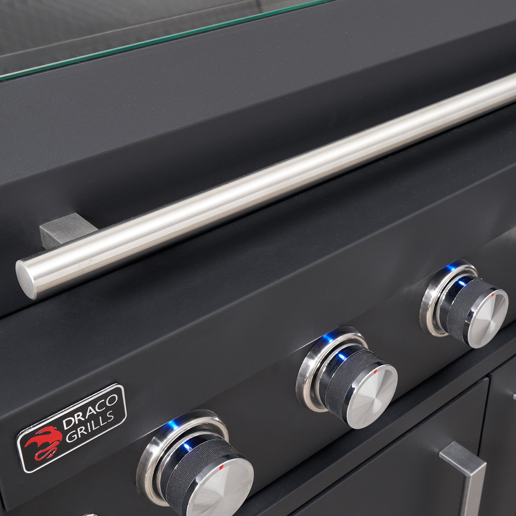 The BBQ's huge cooking space makes it easy to feed large crowds. The sleek, futuristic style and matte black finish will enhance any garden. It can be converted to Natural Gas with a Draco Grills Outdoor Kitchen Natural Gas Conversion Kit.