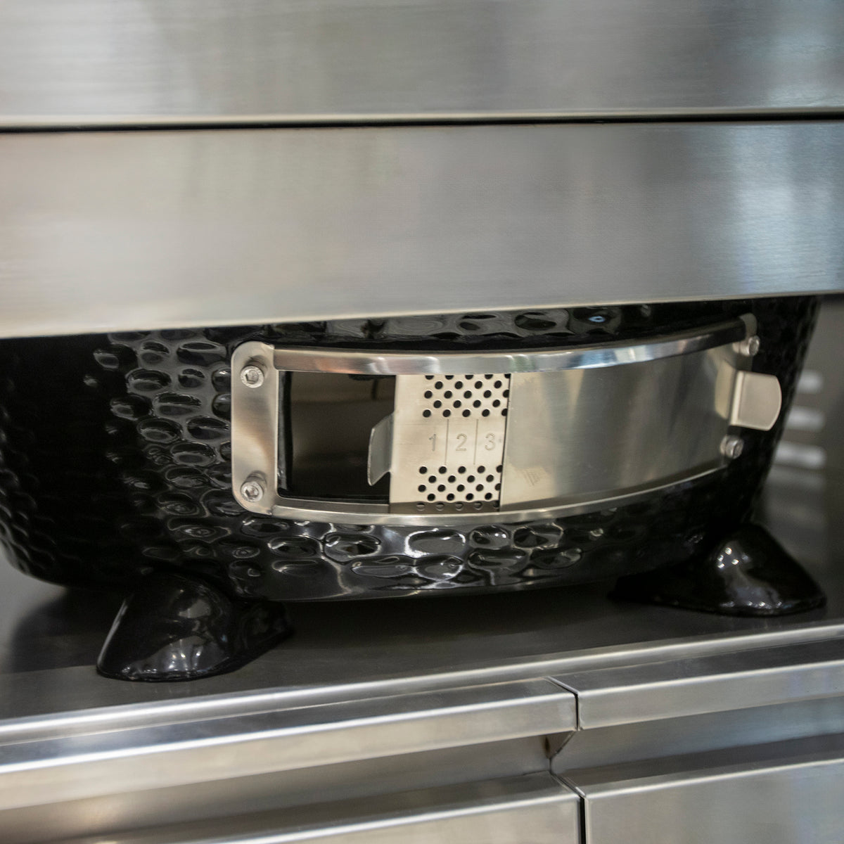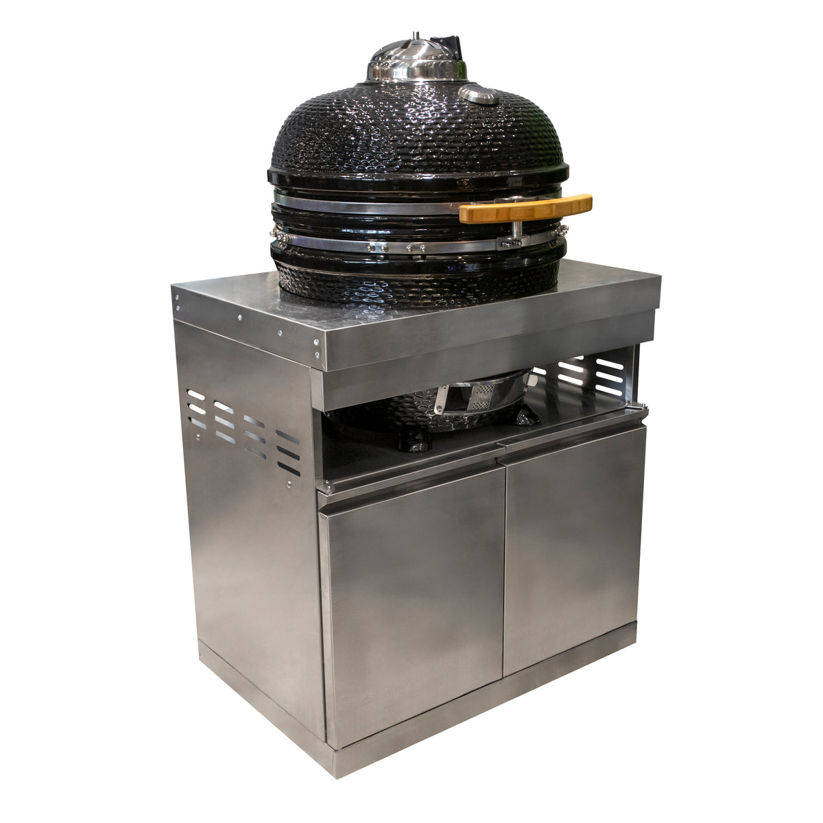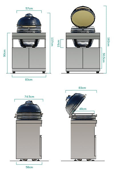 The 304 grade stainless steel cabinet, a part of our modular outdoor kitchen range, provides convenient storage. The maximum height of the unit is 137cm when closed and 162cm when open, offering versatility for your outdoor cooking needs.