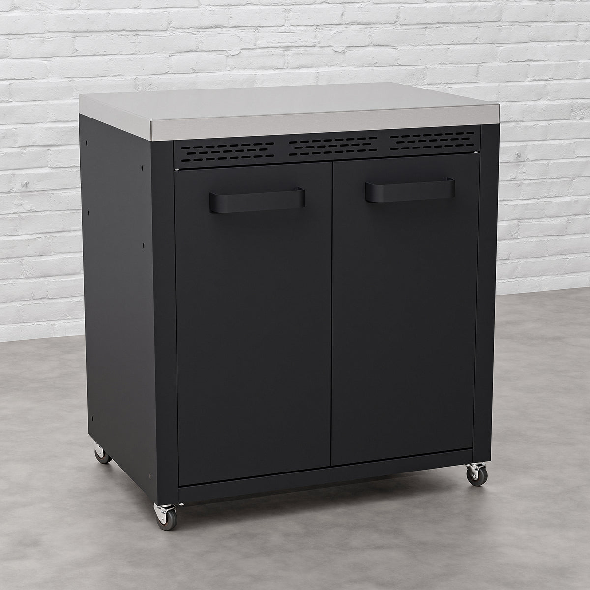 The double-door cupboard provides generous storage space, making it easy to organize your grilling tools, accessories, and other essentials. Whether you're storing utensils, cleaning supplies, or spare gas tanks, this cabinet helps keep your outdoor space neat and clutter-free. The stainless steel top offers a durable and versatile prep surface, perfect for meal assembly or additional cooking space, making it a must-have for any outdoor chef.