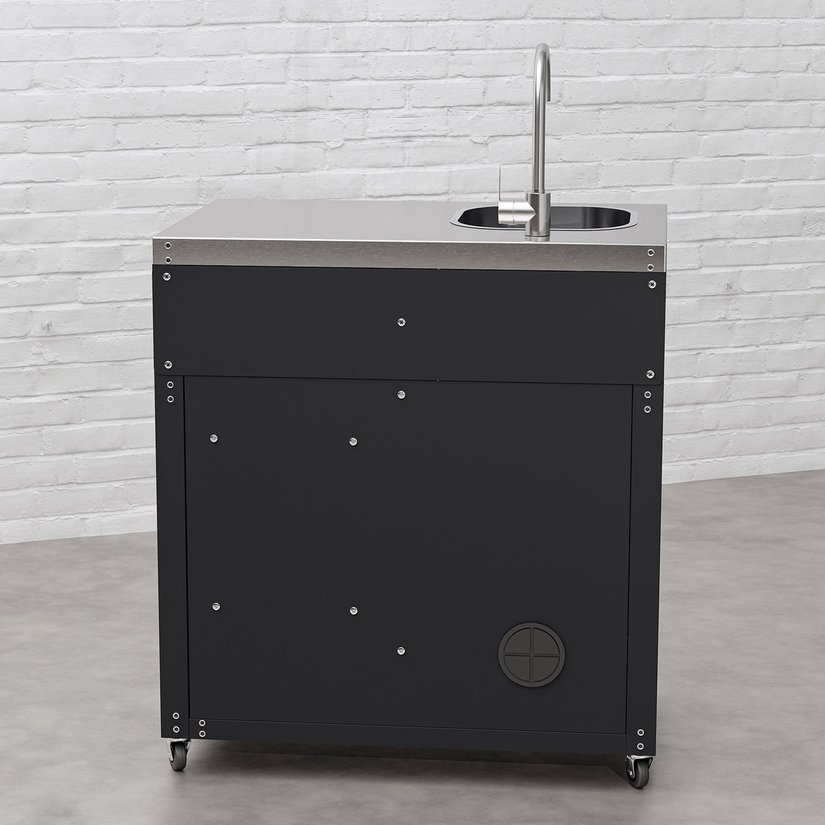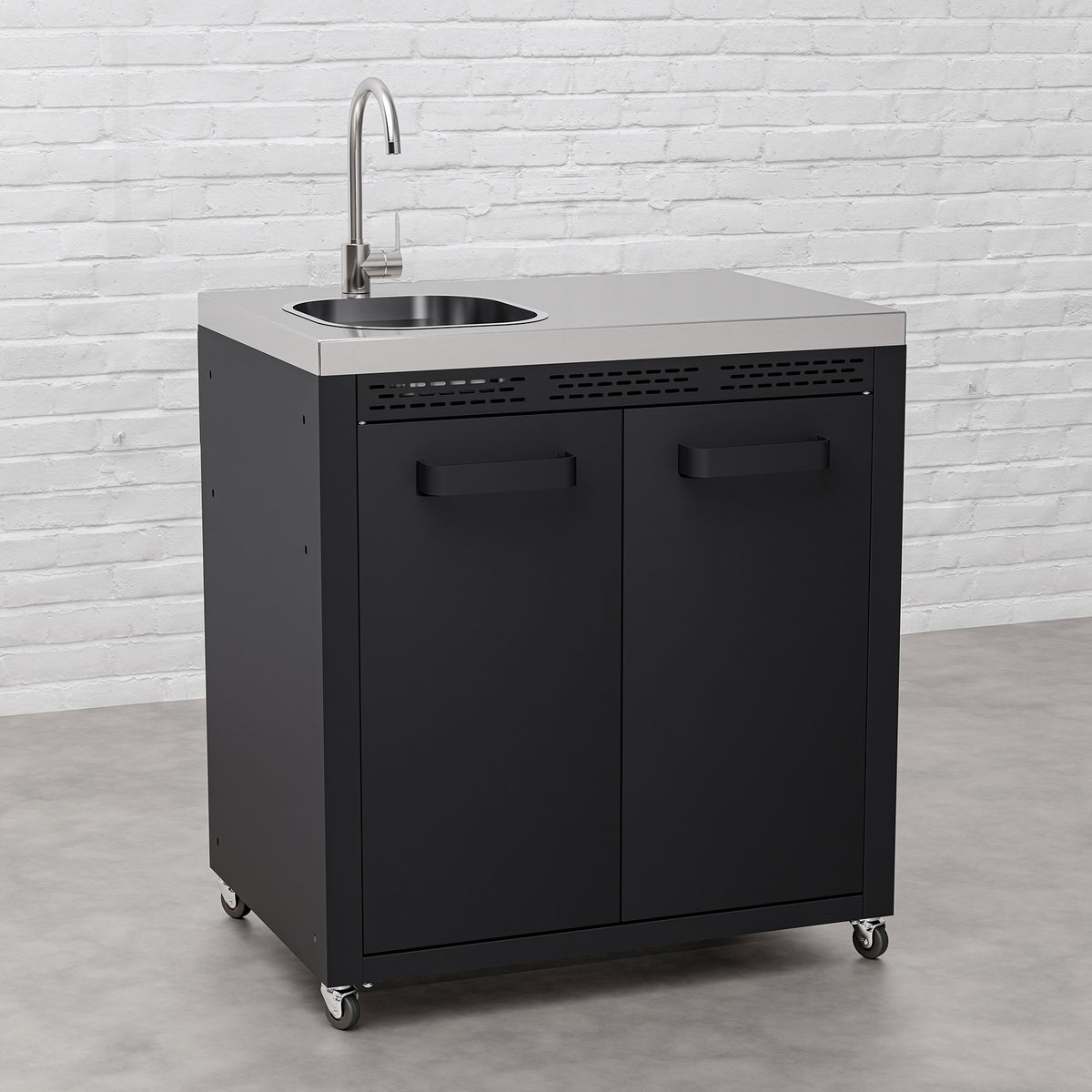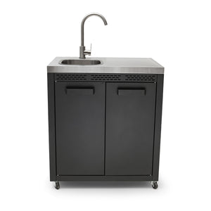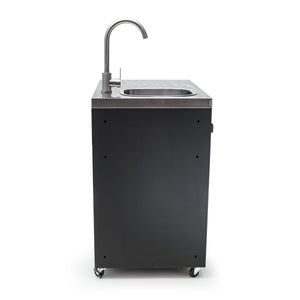• Elevate your outdoor cooking experience with the Draco Grills Titan Outdoor Kitchen Sink Cabinet with Stainless Steel Top. Featuring a sleek black powder-coated finish and a durable stainless steel top, this practical and stylish addition is perfect for those who want to bring convenience and functionality to their outdoor kitchen.