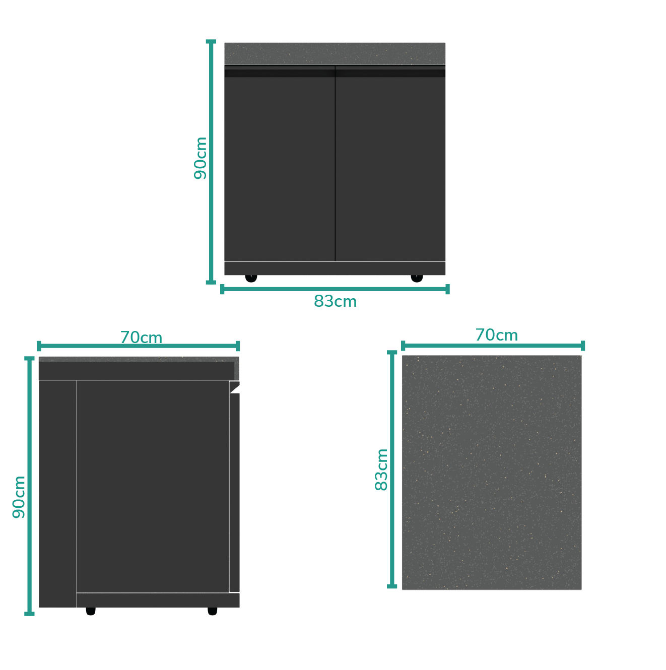 • Total Work-Surface Area: 70cm (D) x 83cm (W) - 0.581SqM