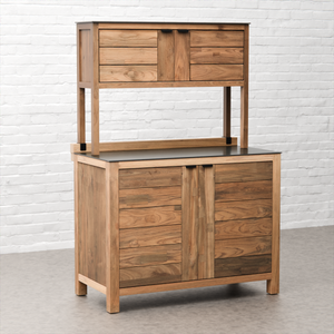 Draco Grills' Teak Outdoor Kitchens are made entirely out of reclaimed Teak. It is essentially maintenance free due to its high concentration of natural oils and minerals, which make it resistant to water, rot, insect infestation, fungal decay or mildew.