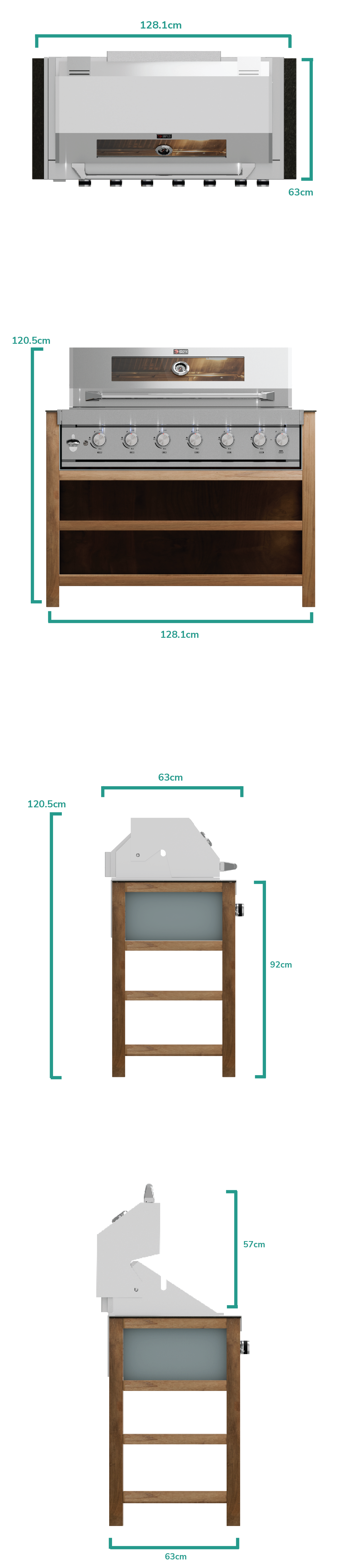 The housing unit, made entirely out of reclaimed Teak, offers plenty of storage and keeps everything you want to cook or serve with out of sight and away from the elements. A built-in fire resistant heat shield lines the housing for the 6 burner BBQ. It also contains 2 open shelves, allowing various items to be kept below (e.g. cooking utensils, cutlery or crockery); all within a sustainable and solid Reclaimed Teak frame.