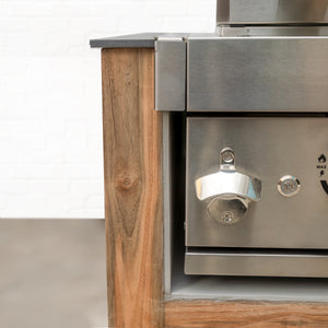 Draco Grill's Teak Outdoor Kitchens are manufactured 100% recycled Teak. It is virtually maintenance free, due to a high content of natural oils and minerals, making it impervious to water, resistance to rot and insect infestation, fungal decay or mildew.