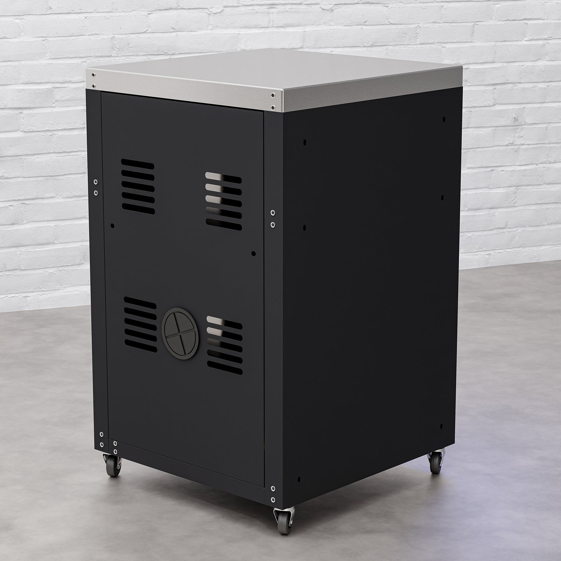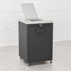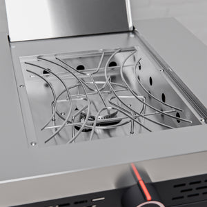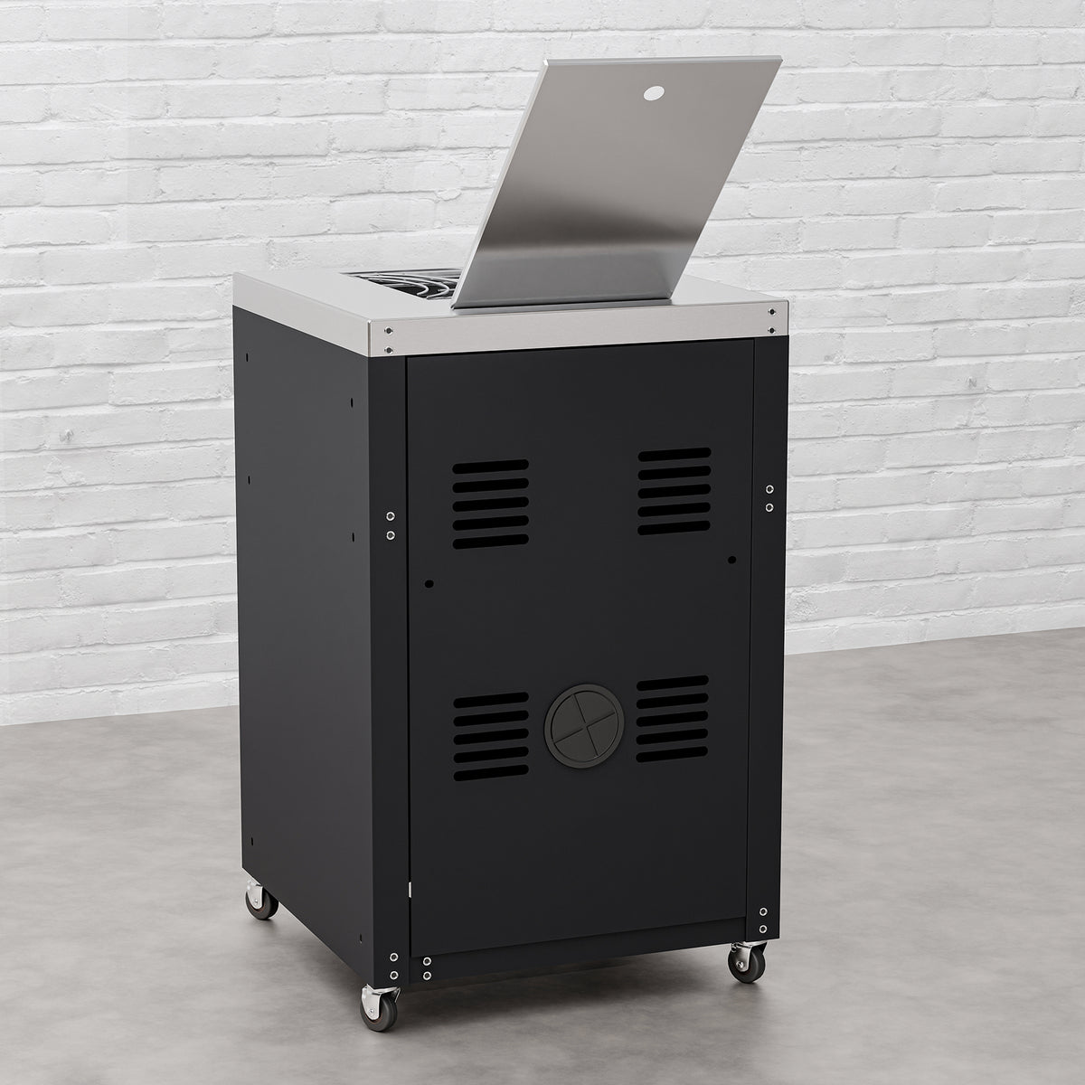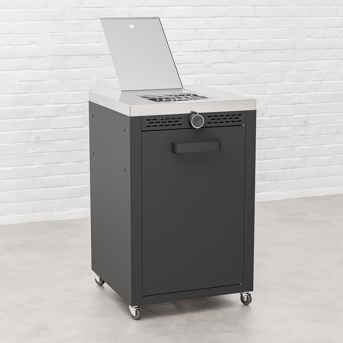 The side burner cabinet features a sleek black powder-coated finish, and is the perfect addition to your outdoor kitchen barbecue, offering both style and functionality. Equipped with a stainless steel top and stainless steel burner, it delivers durability and performance for all your cooking needs, whether you're heating sauces, grilling sides, or boiling water.