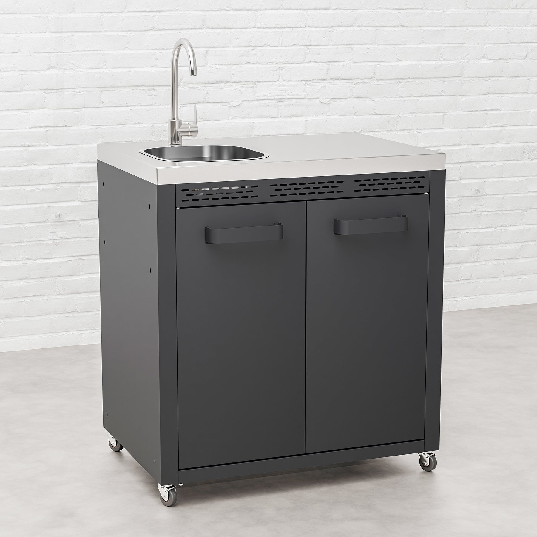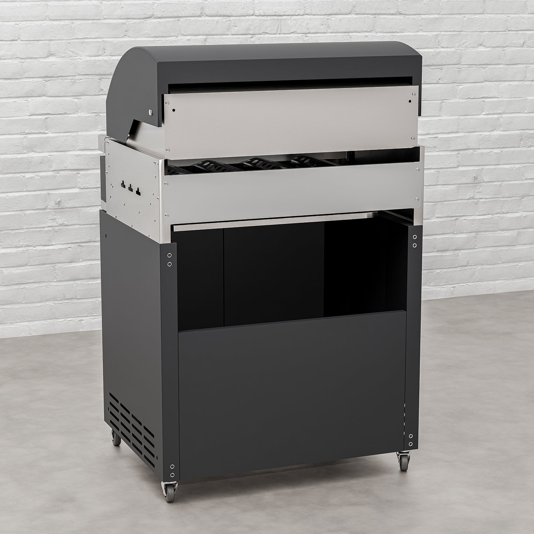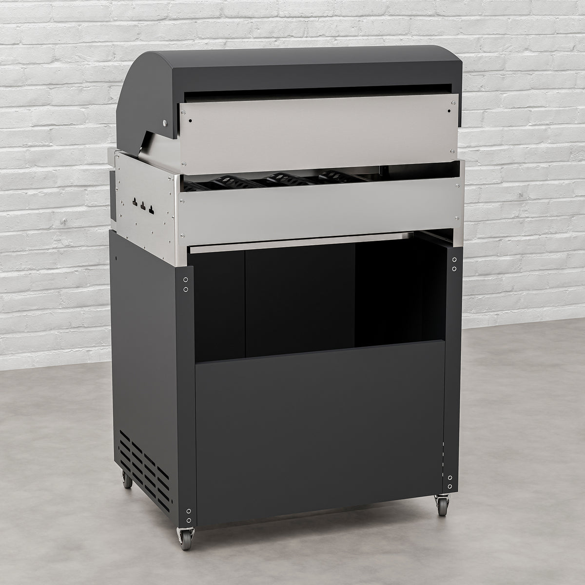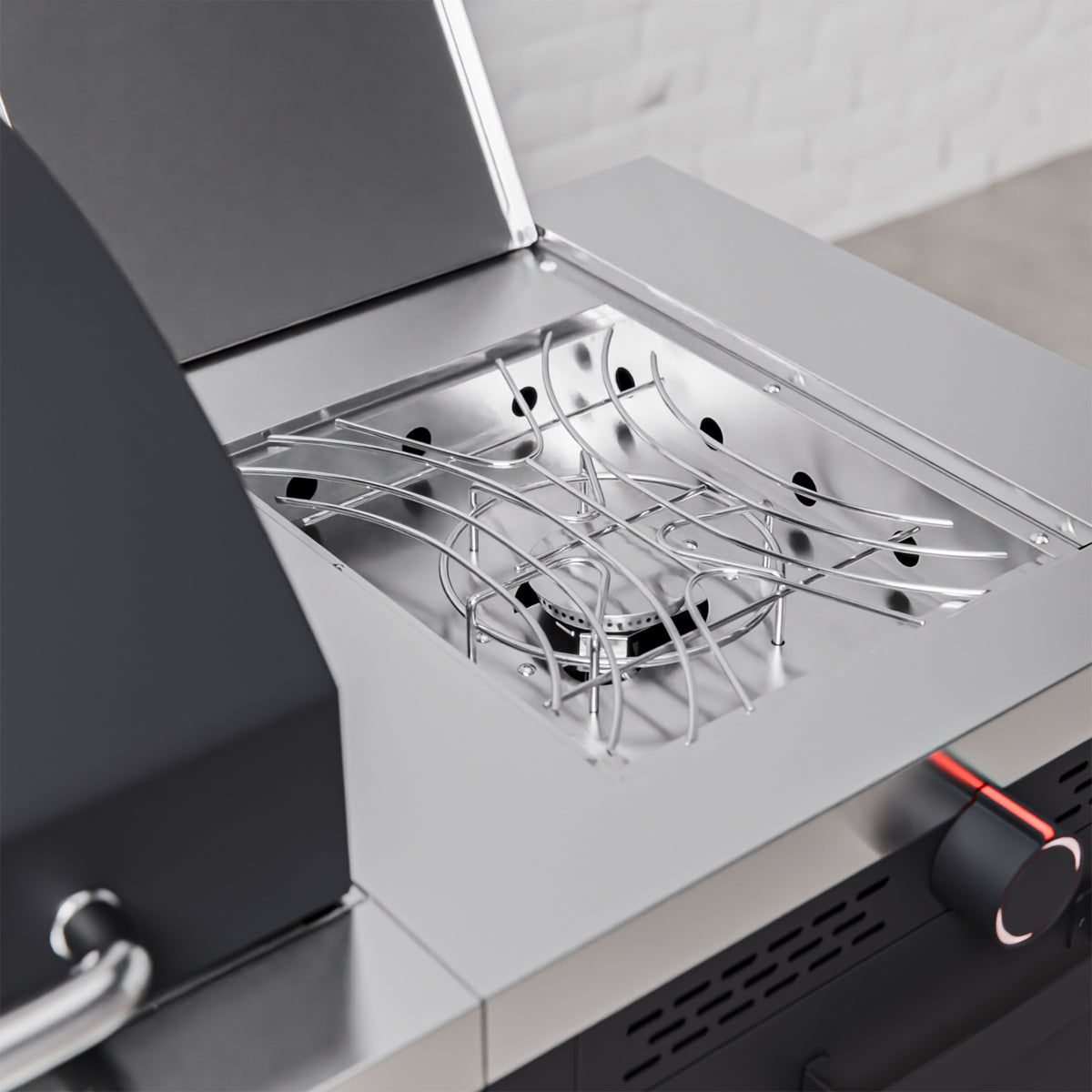 The side burner cabinet features a sleek black powder-coated finish, and is the perfect addition to your outdoor kitchen barbecue, offering both style and functionality. Equipped with a stainless steel top and stainless steel burner, it delivers durability and performance for all your cooking needs, whether you're heating sauces, grilling sides, or boiling water.