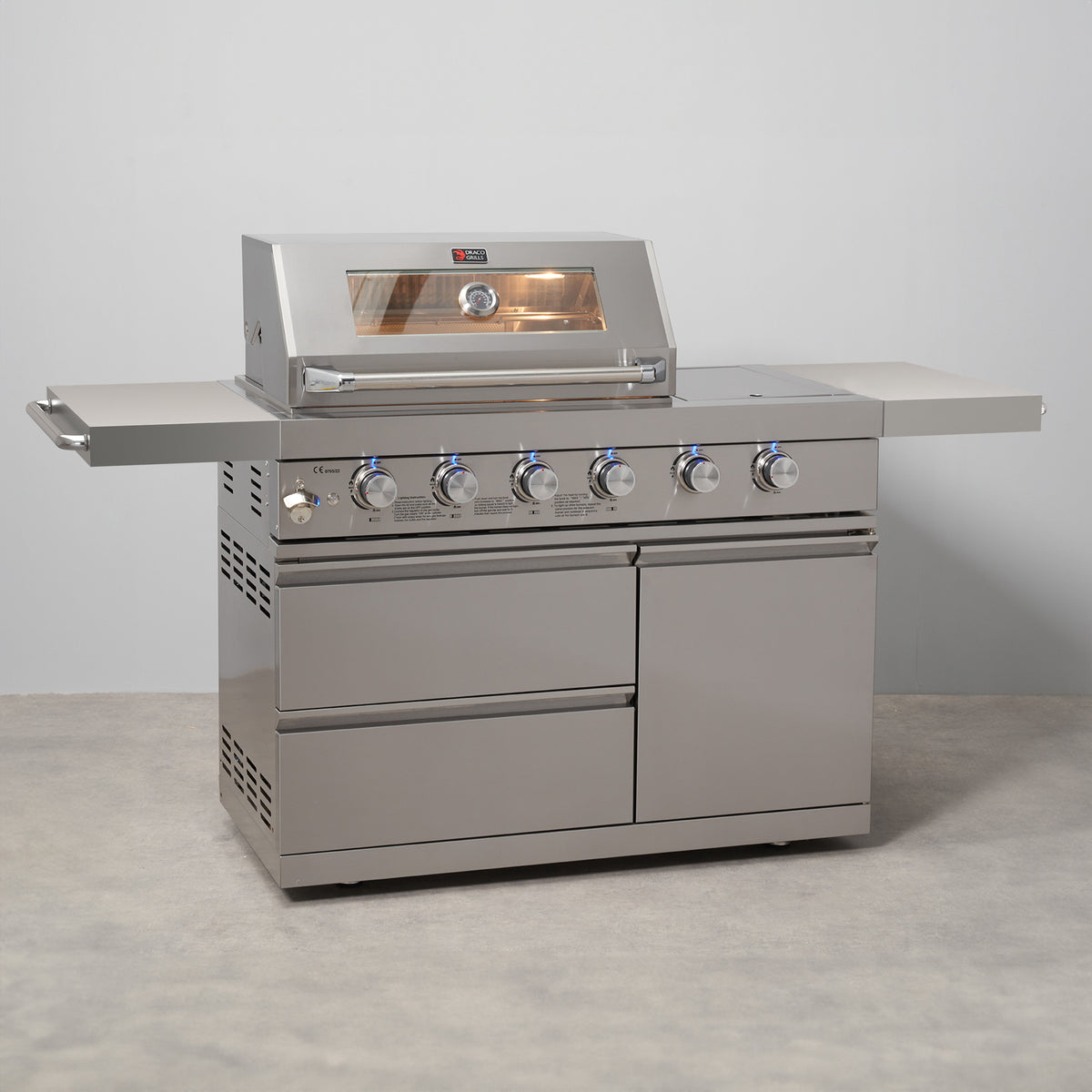 • The luxurious Draco Grills Z450 4 Burner Gas BBQ with Integrated Sear Station will look fantastic in your garden. The grill comprises of a double skinned stainless steel hood, stainless steel tubular burners and a solid galvanised frame.