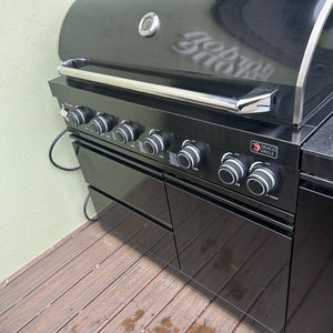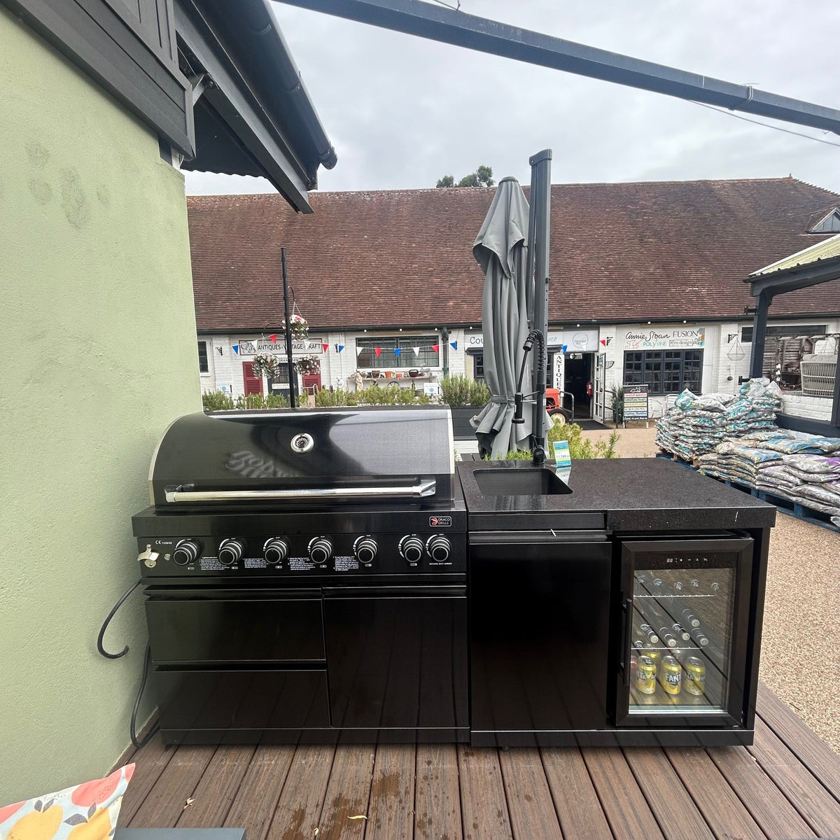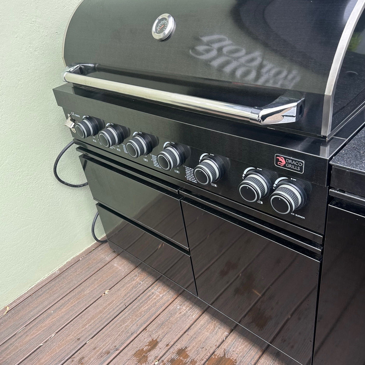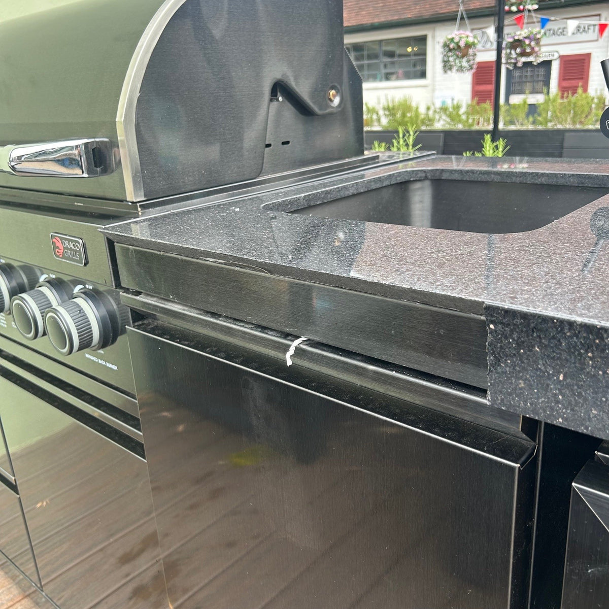 Ex Display Draco Grills Fusion 6 Burner Black Outdoor Kitchen with Double Fridge and Sink Unit