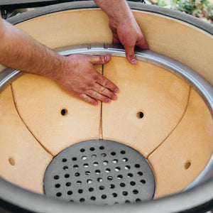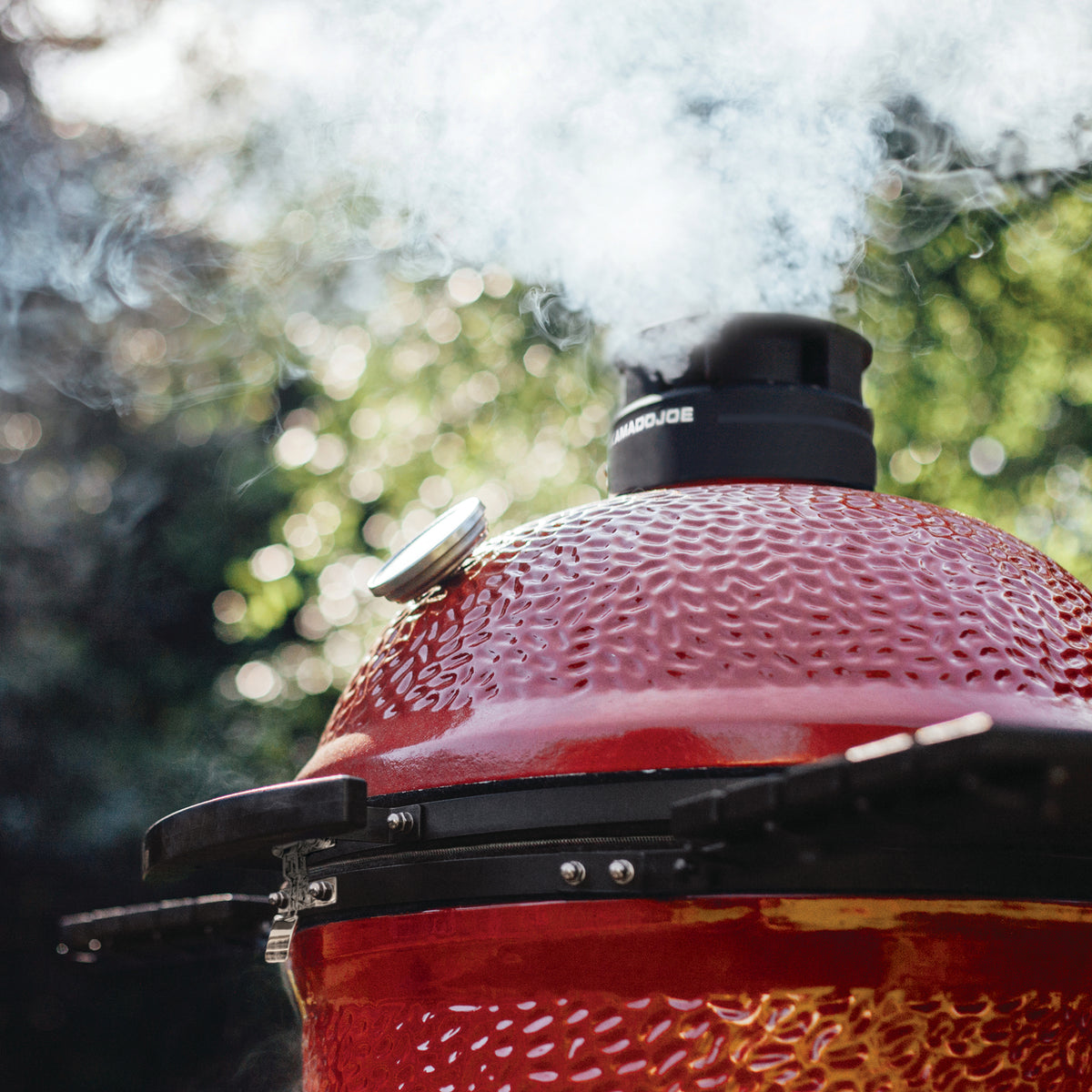 The kamado Joe Big Joe III features a thick-walled, heat-resistant shell that locks in smoke and moisture at any temperature.