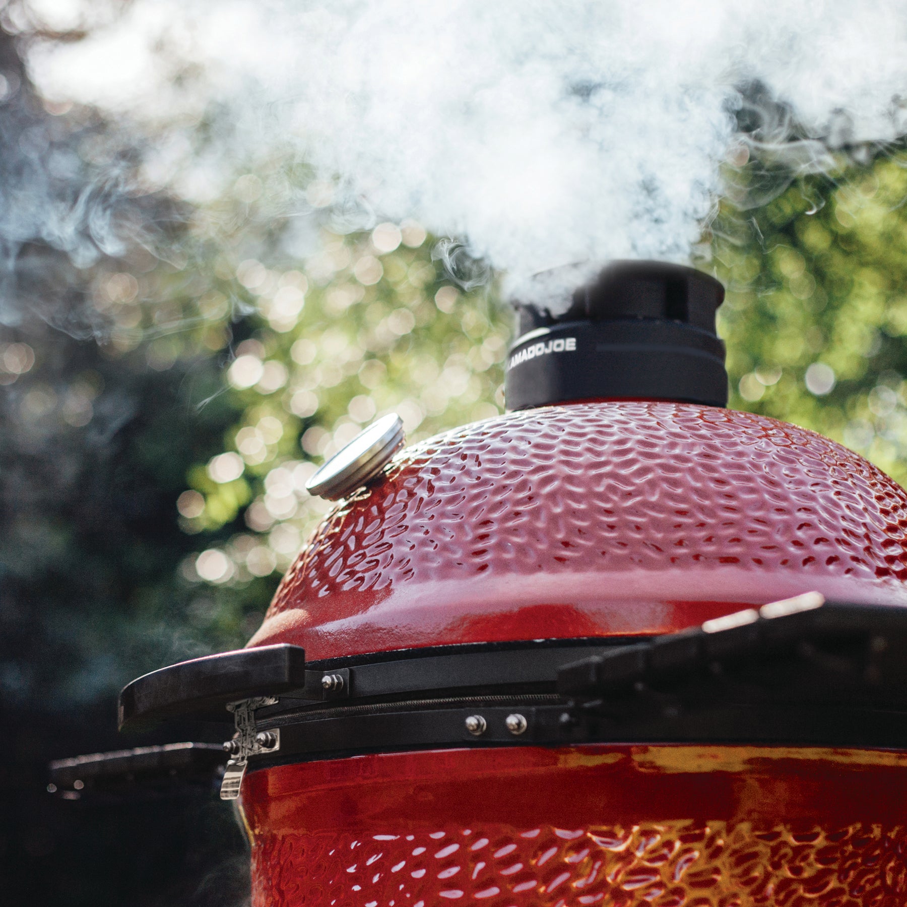 The kamado Joe Big Joe features a thick-walled, heat-resistant shell that locks in smoke and moisture at any temperature.